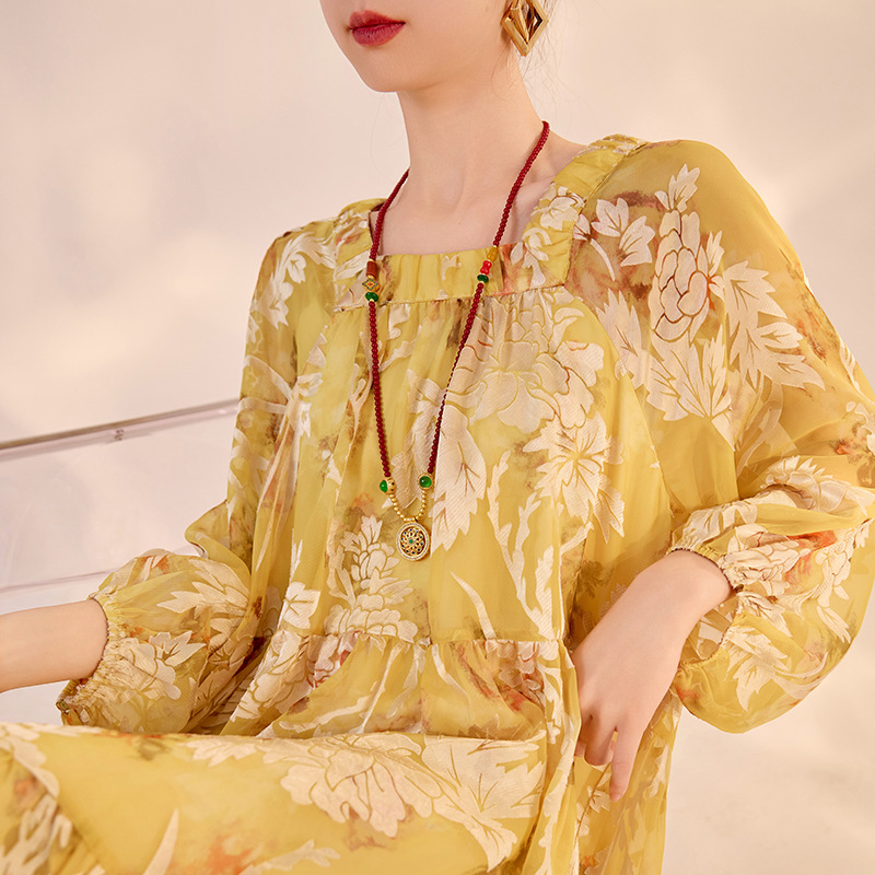中国風2025春夏新作 軽奢風 ゆったりとした妖精のようなワンピース 新中式 細見え レーヨンワンピース N3052