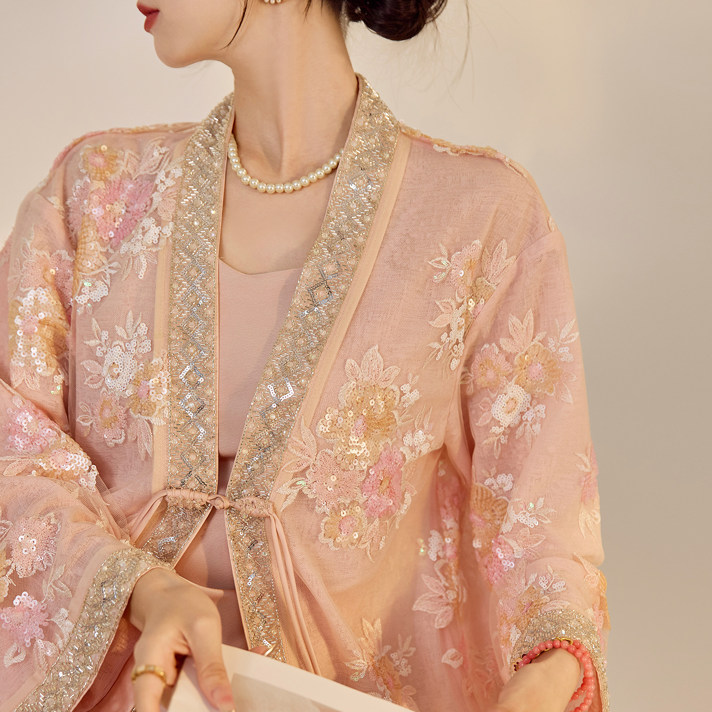 2025国風気質重工刺繍ピンク新中国風流蘇スパンコール馬甲半スカート2点セット女性N3068