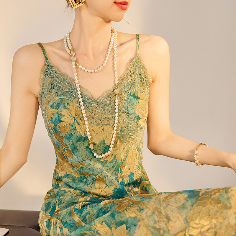 新中国式2025夏の新型国風刺繍レースの軽豪華なストラップワンピース2点セットN4001