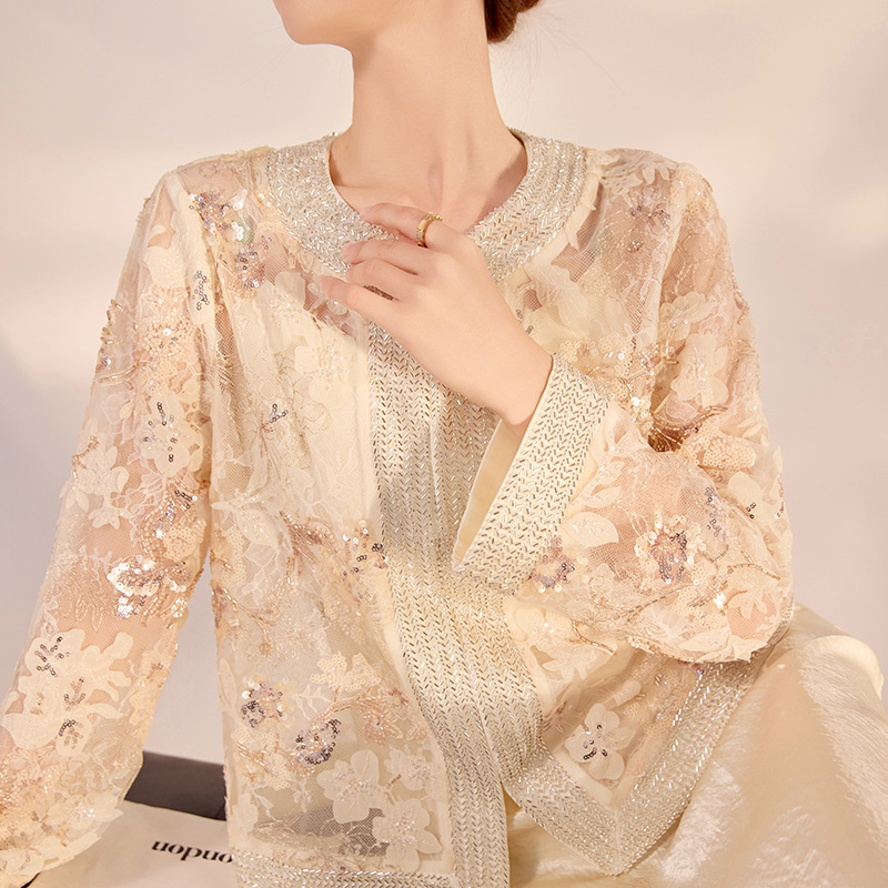 2025春夏新作高級珠刺繍デザイン上着国風新中国式百合釘珠レースコートN3067