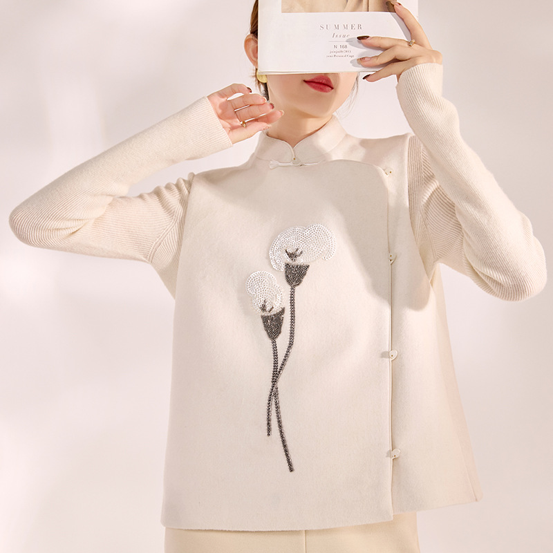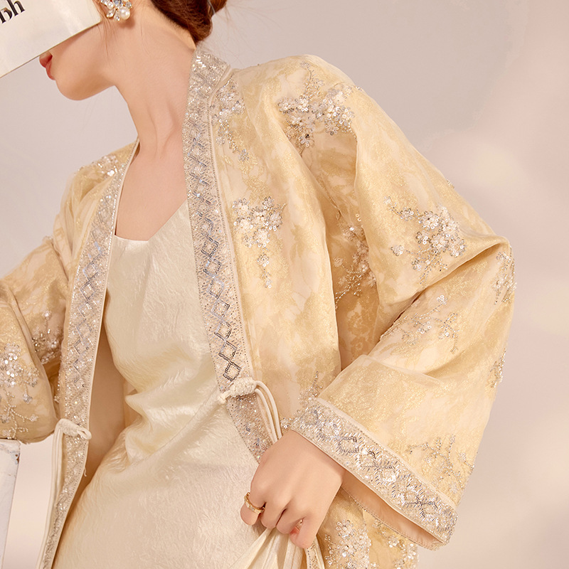国風2025春夏新作気質刺繍軽豪華上着新中国式百合釘珠カーディガンコートN3001