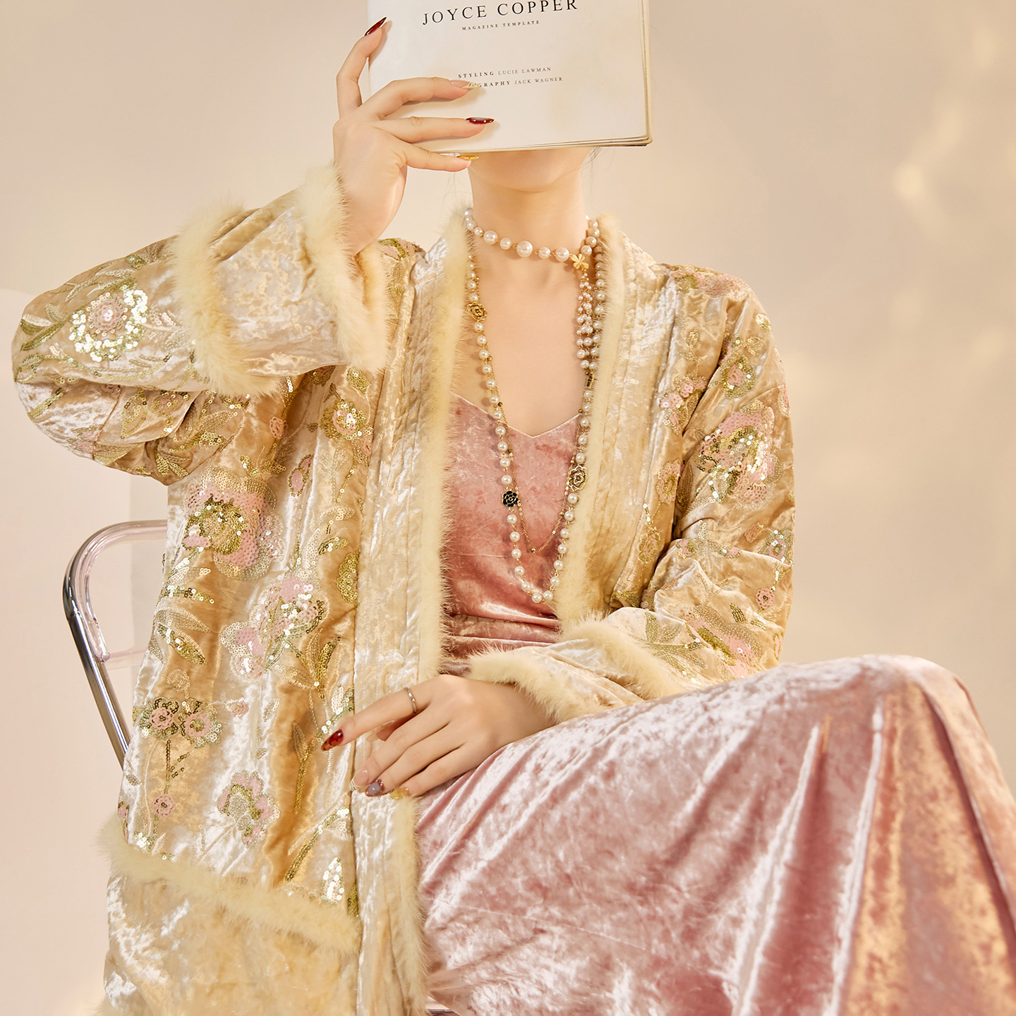 2025年冬新作 国風スパンコール刺繍 ファー付きデザイン 新中式綿服ジャケット レディース MX128