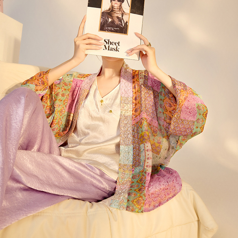 2024新中国式高級绢糸ファッションリゾート風の花柄は通気性のゆったりしたシャツのブラウスm 6083をつなぎ合わせます。