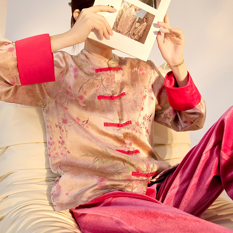 100% 绢糸の新しい中国式のコートの女性の高级感の刺繍の美しい中国式のつなぎのプリントの上着M6035