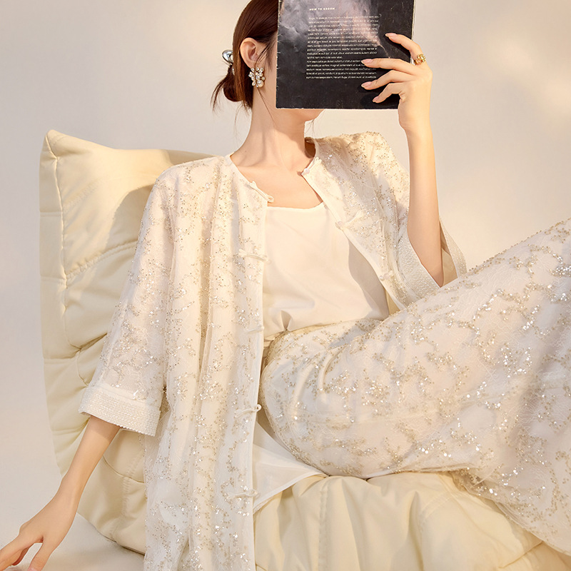 2025 高貴な娘感レーヨン新中国風刺繍ビーズ気質塩重工業刺繍ライト成熟したスタイルジャケット M6110