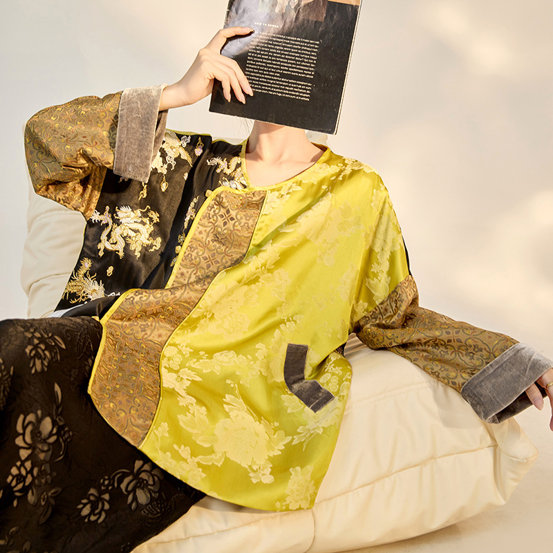 新商品の国風新中国式ジャカード人シルクシャツがゆったりしていて、高級感があります。