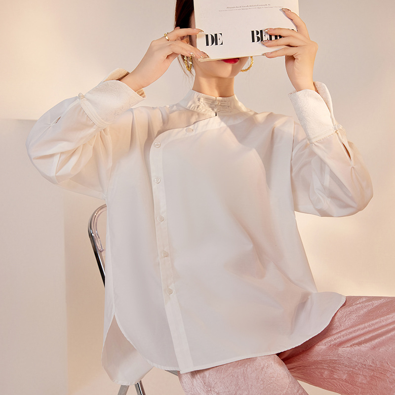 2025国風中国式カジュアル百合上着高級純色長袖軽豪華立襟復古シャツ女M8023