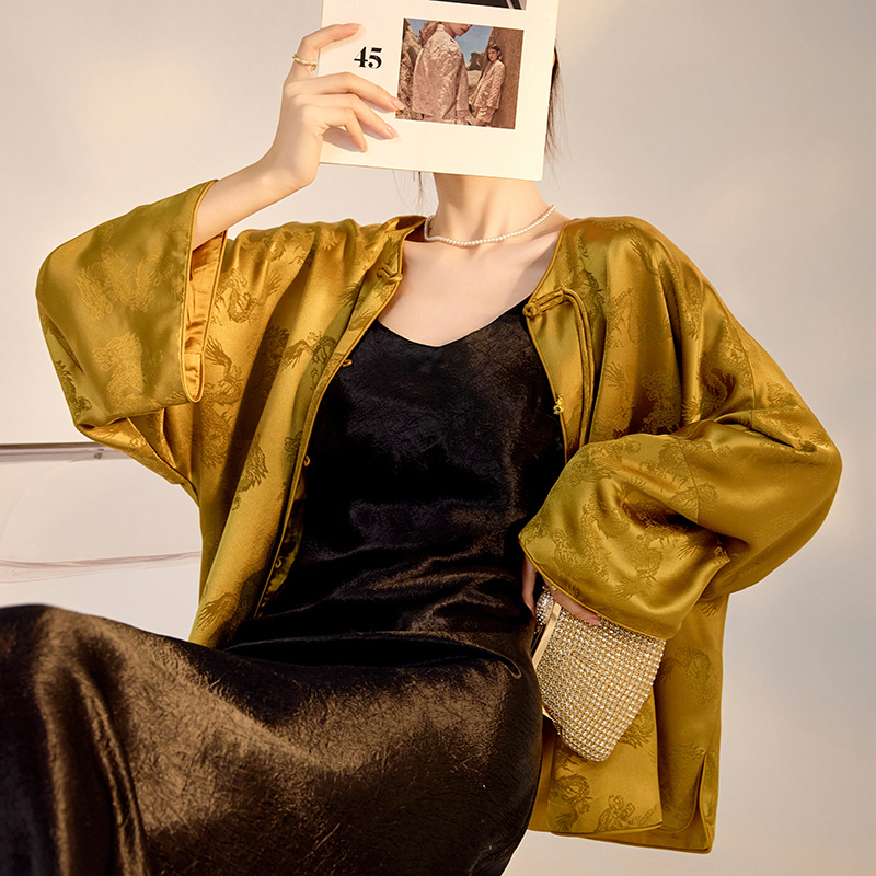 中国風新中式新作古風高級婦人服龍柄アセテートジャケット軽贅沢高級トップス M4117