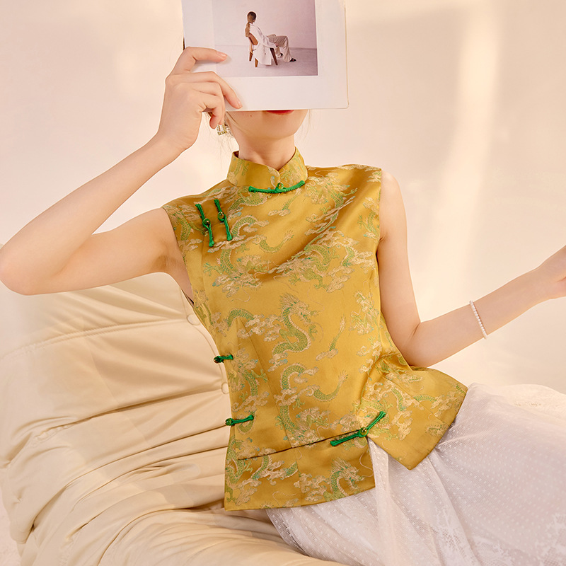 新中国風気質ジャカード袖なしチョッキ国風2025夏盤ボタン高級刺繍立襟馬甲N3095