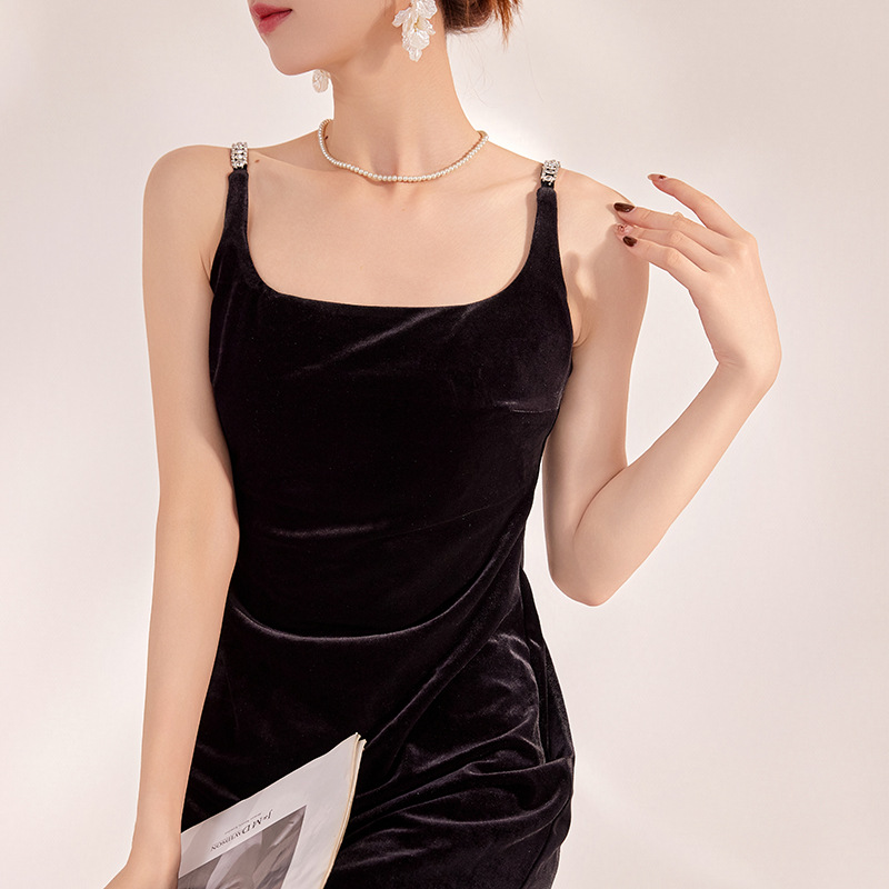 国風新中国式新型ベロア魚尾ギャルデザインセクシーロングスカート女性高級気質サスペンダースカートN1022