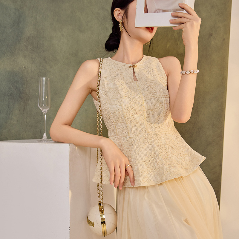 2025夏の新型中国風馬甲女高級宝相花刺繍绢糸ファッションベストN4023
