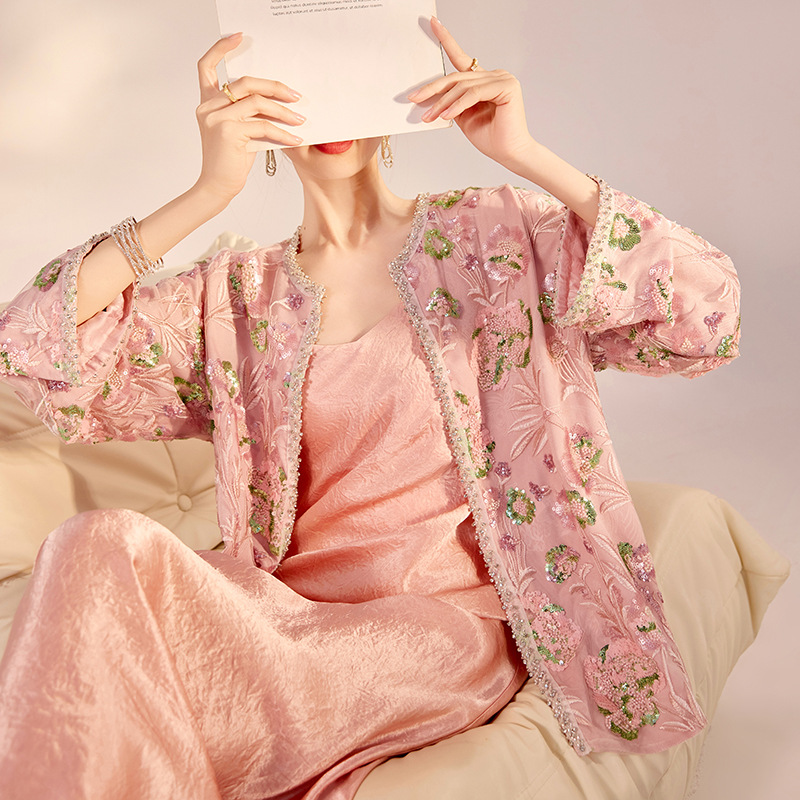 新中国風高級夏2025カーディガンゆるいコート仙気ストラップワンピースセット女性n3 112