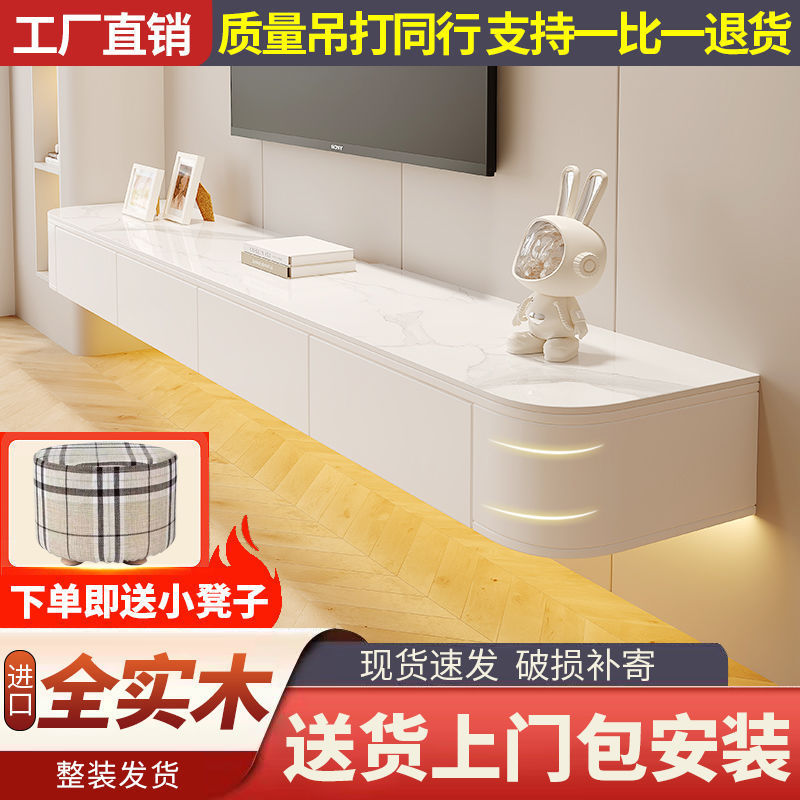 無垢材テレビキャビネット吊り下げクリームスタイルモダンシンプル壁掛け小さなアパートリビングルームコーヒーテーブルテレビキャビネット新しいスタイル