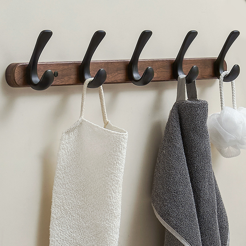 胡桃の木の創意的なフックは穴を開けない壁の中式のドアの後ろの玄関の服の帽子のシングルフックのホテルの浴室の実木の服のフックです。