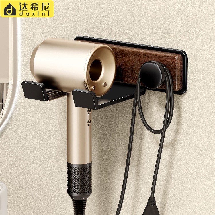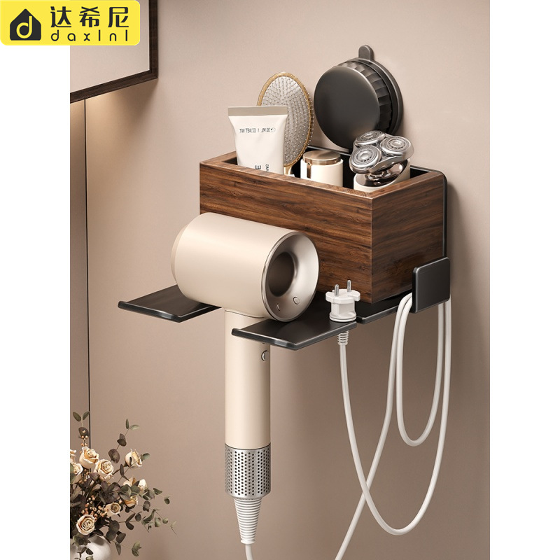 ライト高級ヘアドライヤー収納ラックブラックウォールナットヘアドライヤー収納ラック浴室パンチフリー吸盤ヘアドライヤーハンガー