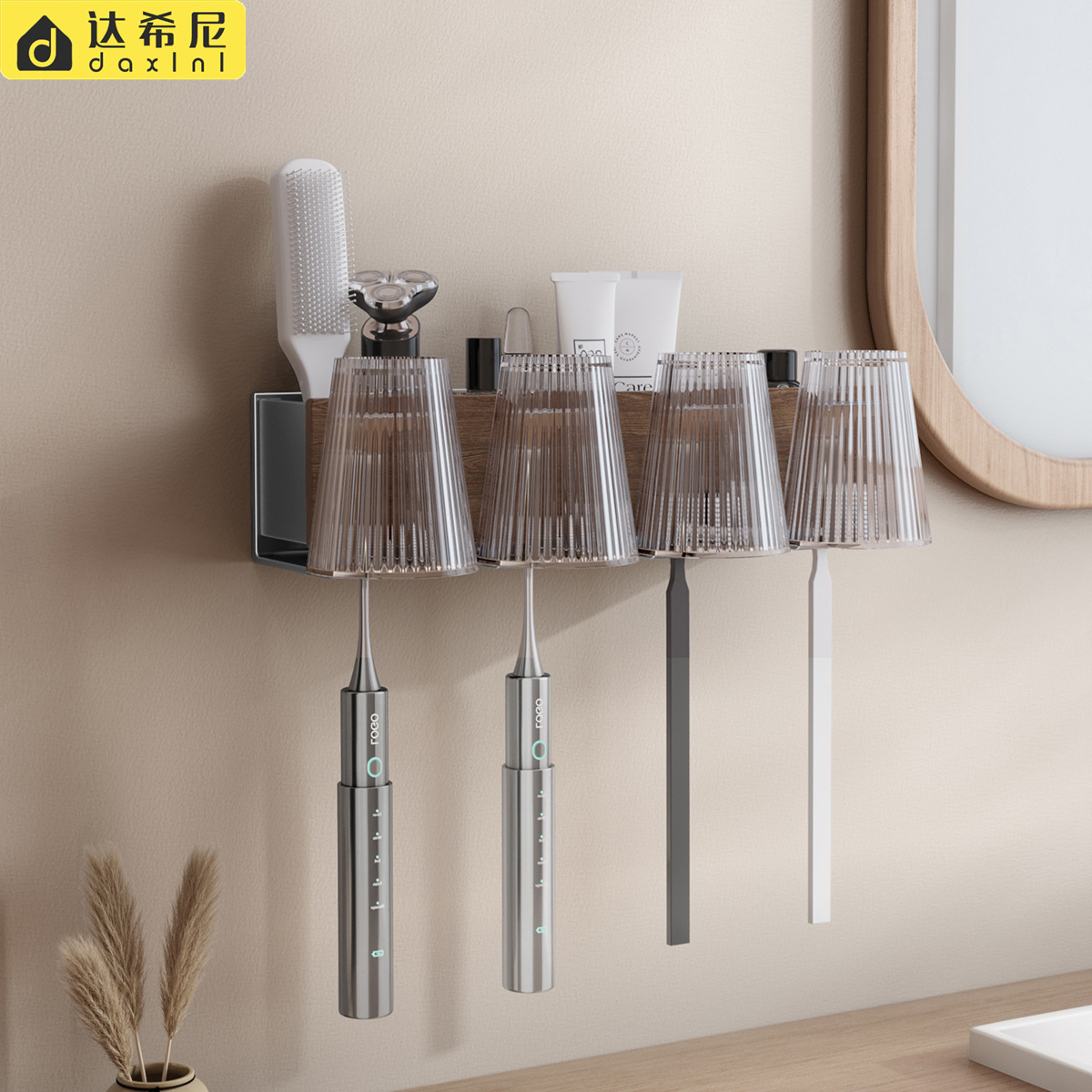 歯ブラシホルダー壁掛け式トイレ穴なし歯磨き粉ホルダー歯コップ収納棚壁掛け式電動歯ブラシホルダー