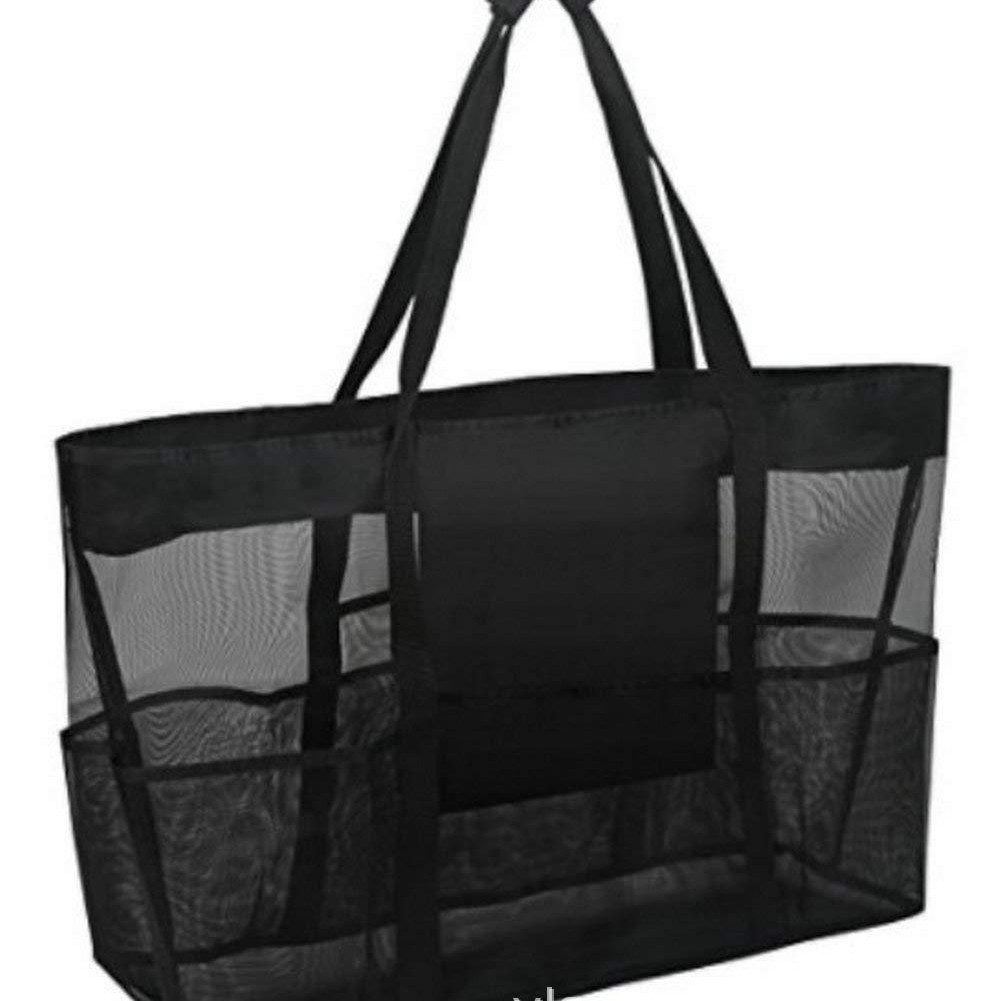 ビーチバッグ Amazon メッシュビーチバッグ 8 ポケットバスルームバッグおもちゃ収納バッグ大容量メッシュ中空バッグ