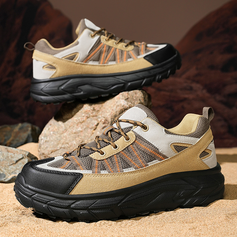 2024秋のネットスポーツシューズ男性の新しい屋外登山靴男性の厚い底にカジュアルなファッションのお父さん靴を合わせる