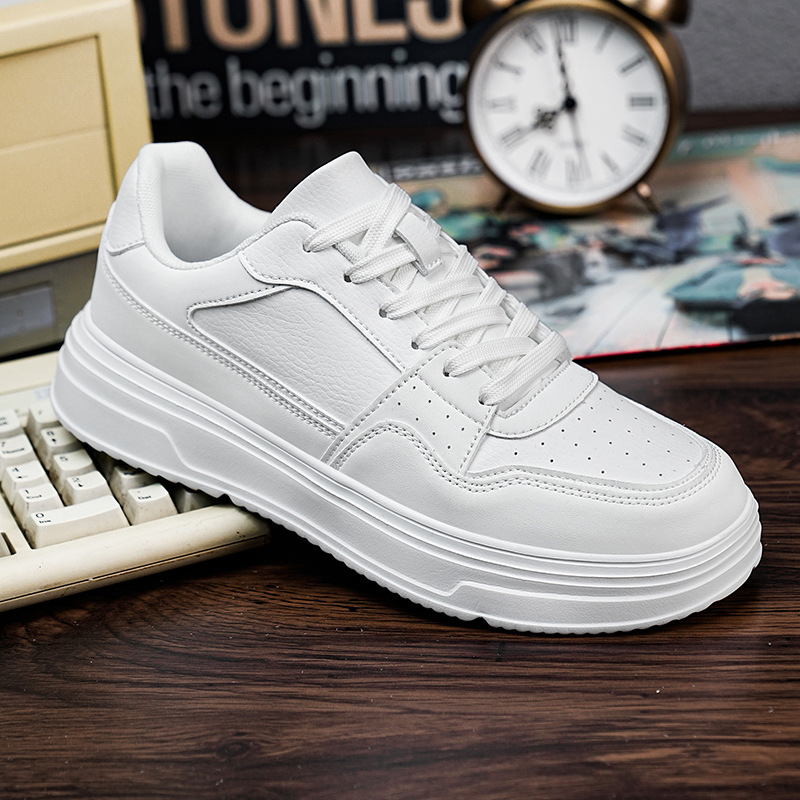 新型のクロスボーダーの大きいサイズの男性の靴の皮の面の快適さの厚い底のレジャーの運動靴のファッションはファッション的に合わせてファッションの板の靴の男性の黒色を配合します。