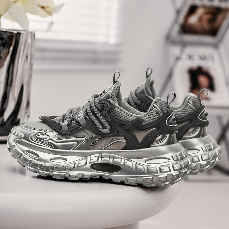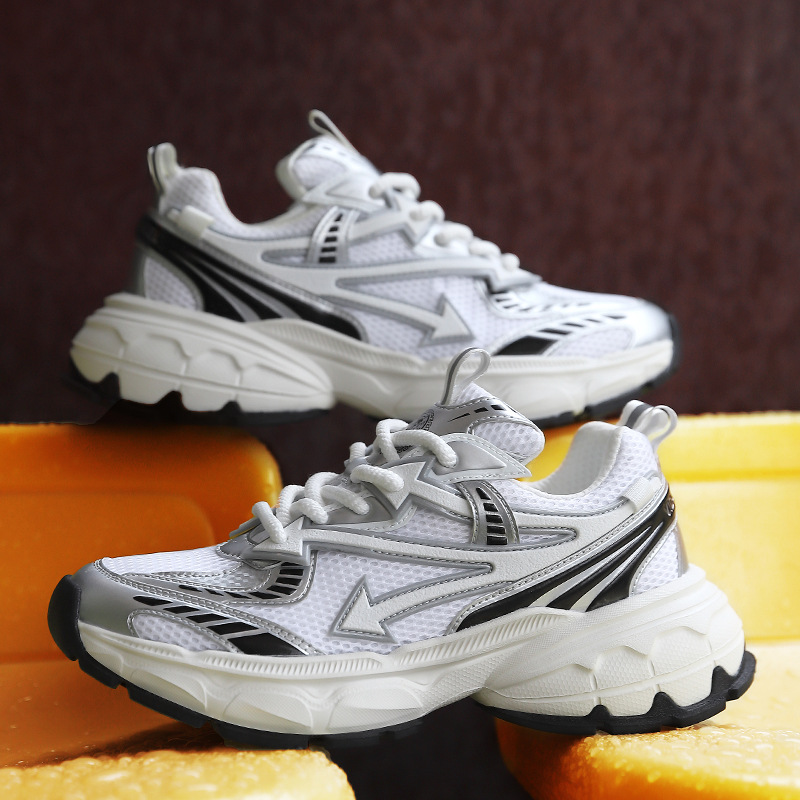 男の靴の秋の2024項の通気性の潮流のお父さんの靴の厚い底のカップルの靴の復古のレジャーはスポーツシューズの男を高めます。