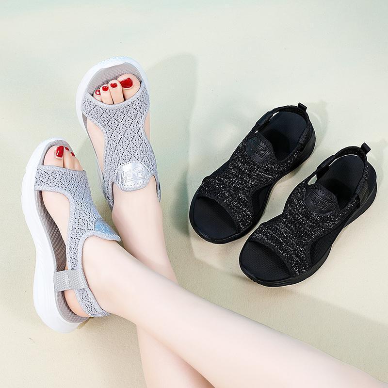韓国版サンダル夏の女性靴の足の柔らかい底のビーチサンダルの大きいサイズの平底の飛織のレジャーの運動のサンダルは代行します。