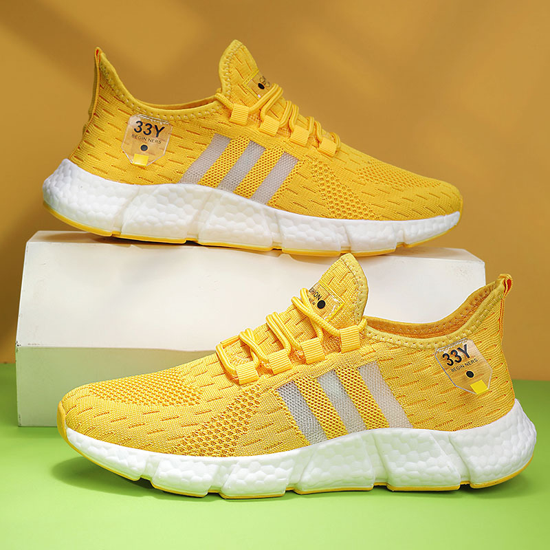 クロスボーダーの大きいサイズ36-46十色のカップルのポップコーンの底の男性の靴の通気性の薄いタイプの百合のカジュアルな飛織の運動靴