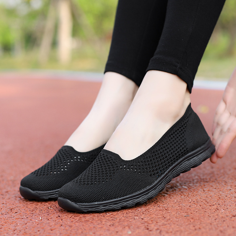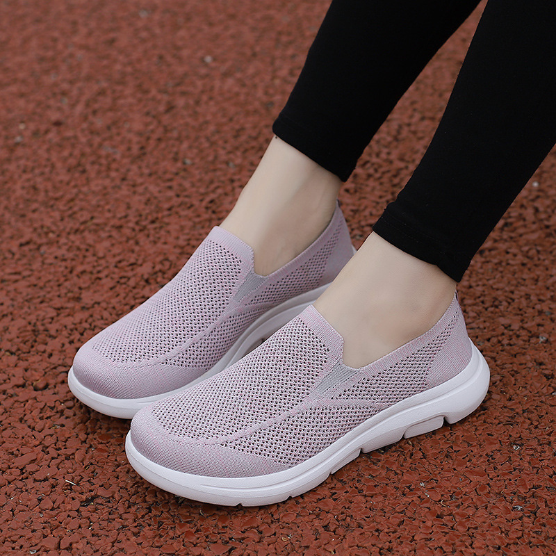 2022春の新型飛織女靴の中で高齢者の健歩靴の軽やかなフラットカジュアル靴の快適な怠け者靴