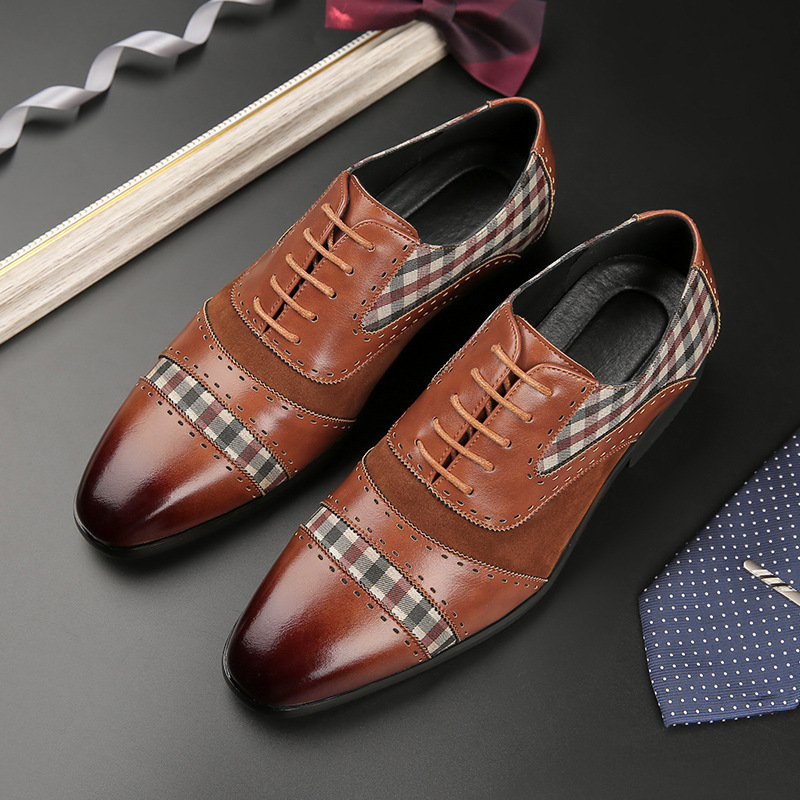 外国貿易の独立駅の速売通のファッションはビジネスの革靴の男性の大きいサイズの正装のスーツの格子のオックスフォードの靴の男性をつなぎ合わせます。