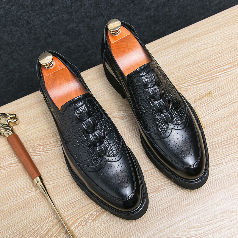 クロスボーダー春節厚い底ビジネス楽福靴男英倫風黒いワニの紋様が高くなりました。