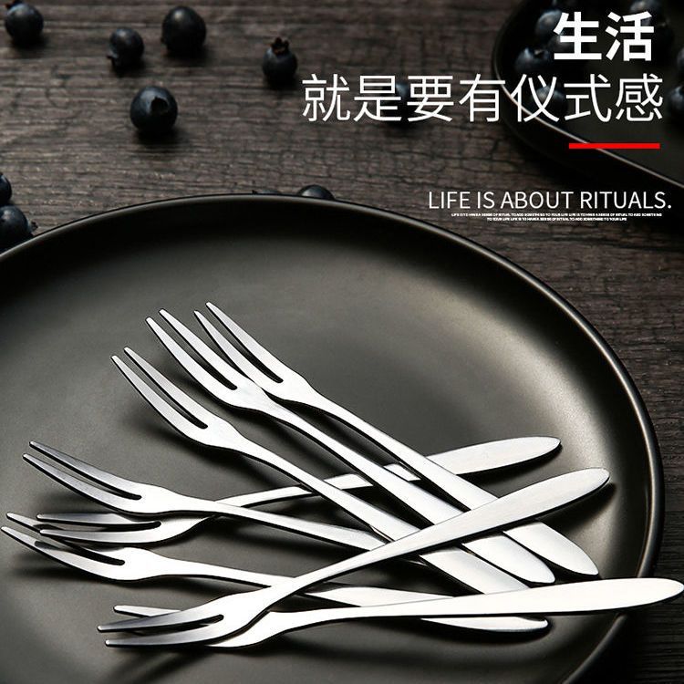 410ステンレス果物フォーク徳系ケーキ二歯フォーク410果物尖尾食器月餅フォークプレゼント卸売り