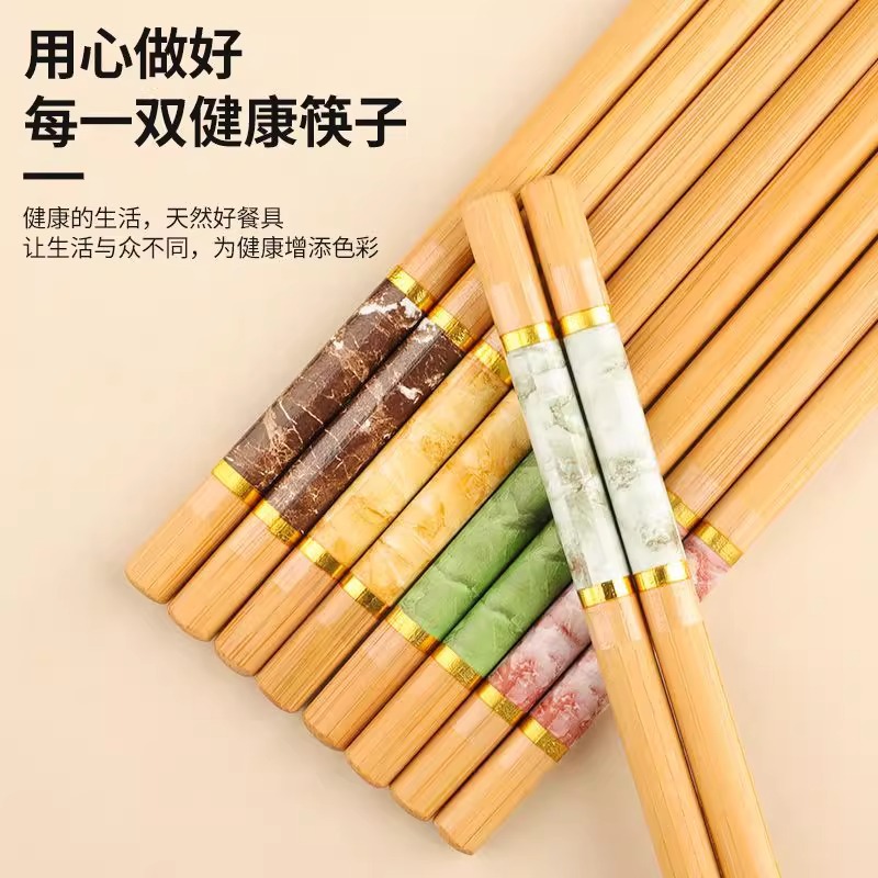 大理石模様の箸、5色の中国風の竹箸、食品グレードの印刷防カビ箸、家庭用レストラン箸