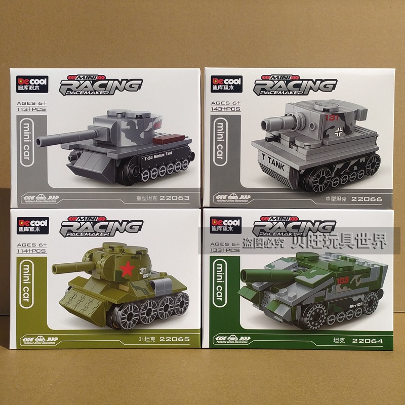 ディック積み木22063-66子供の益知力を合わせて車の男の子の小さい粒子の軍事戦車の贈り物に戻ります。