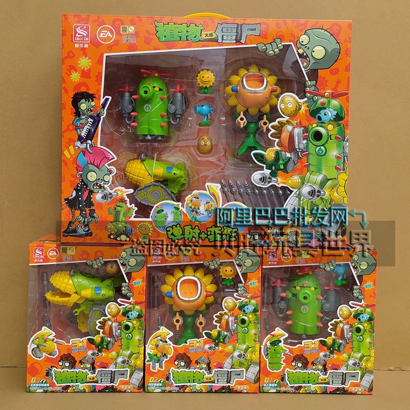 新楽新6524植物大戦ゾンビ変形発射合体機甲三合一グリーンピース手作り男の子玩具