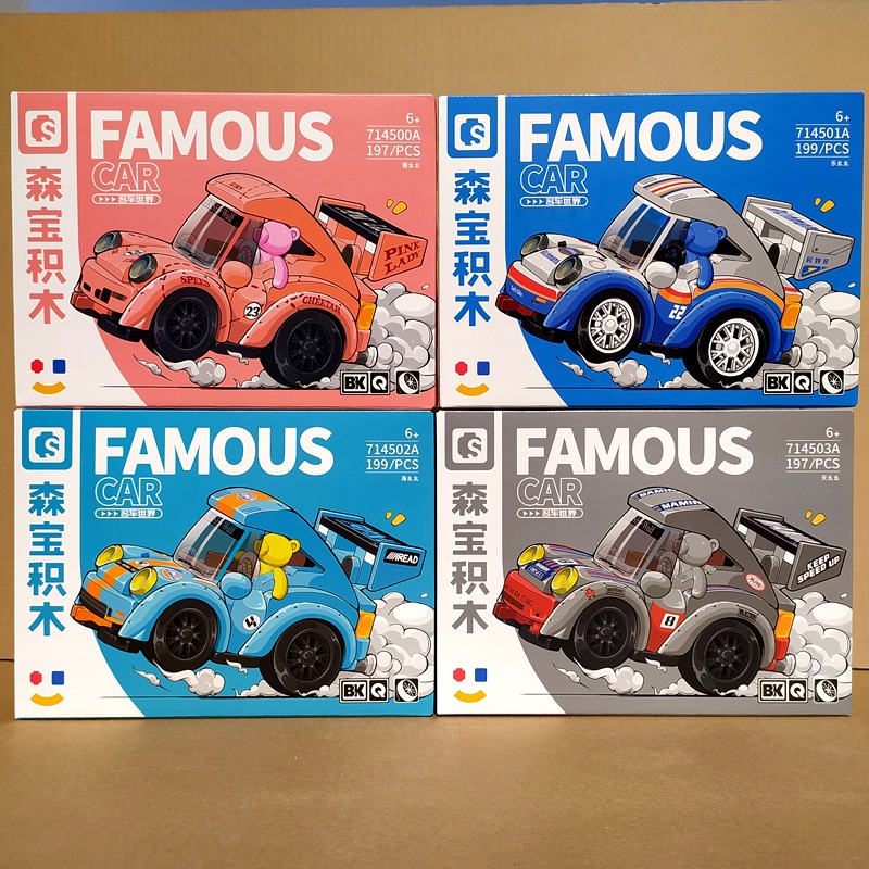 森宝積み木714500a-7熊の卵車の漫画車の有名な車の模型の男の子は組み合わせて女の子の子供のプレゼントを詰めます。