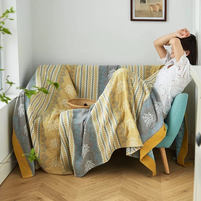 国境を越えた純綿ガーゼタオルは両面用ソファタオル夏の薄い布団の昼休み毛布夏の涼しさに毛布をかけられている