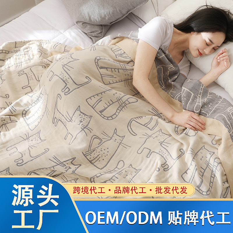 クロスボーダー五層ガーゼは綿唐カードの通気性水洗い綿タオルを厚くして、シングル二人の昼寝毛布で快適にカバーします。