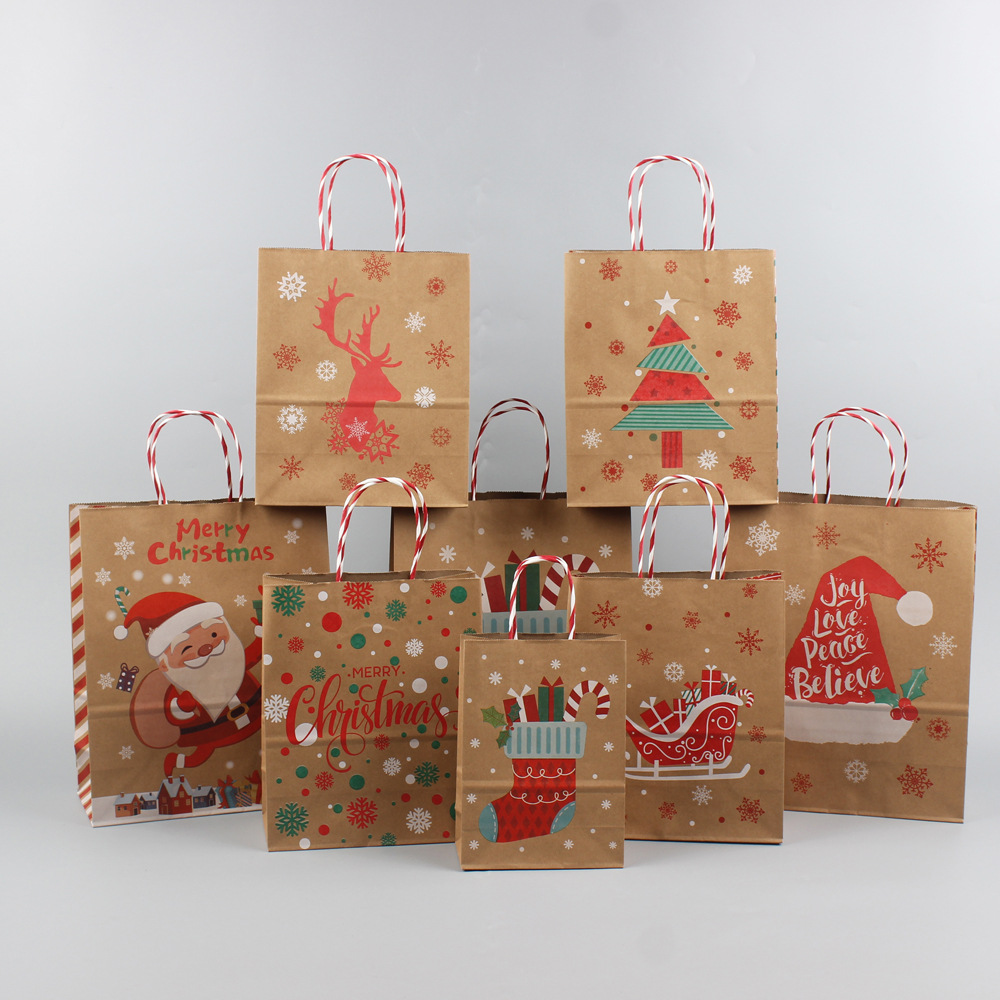 現物は卸売りのクラフト紙の手提げ袋を提供します。クリスマスの祝日のパーティーのプレゼントはアマゾンの越境エビの皮を包装します。