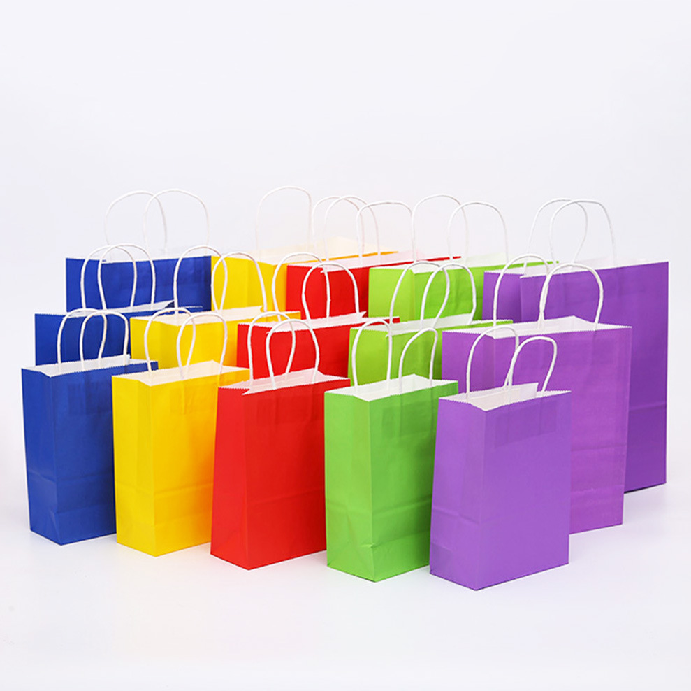現物はカラフルなクラフト紙の手提げギフトバッグを提供しています。