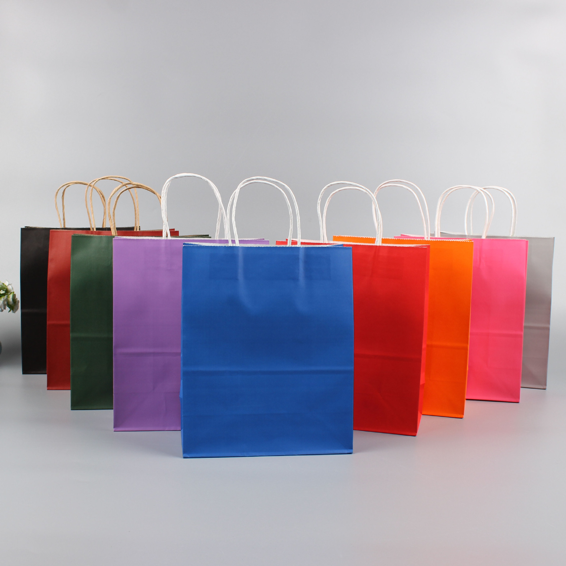 スポットクラフト紙カラフルな使い捨て包装袋ポップコーンボードキャンディーカラージュエリースナックギフトスクエアボトムバッグ