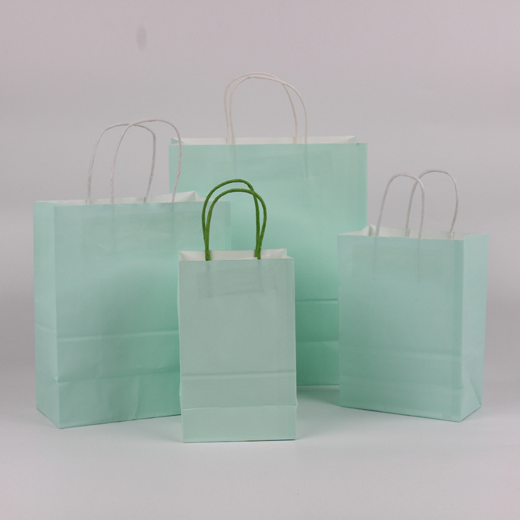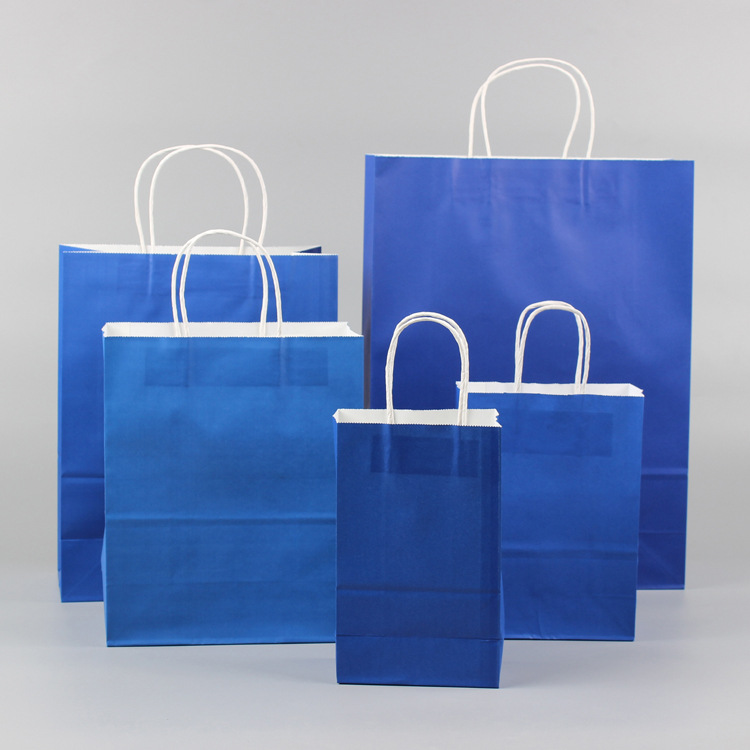 クラフト紙質テイクアウトバッグ食器袋宝青空白純色印刷ロゴスポットデザイン製