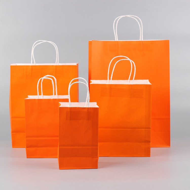 現物はカラークラフト紙袋オレンジ色の手提げ紙袋を提供しています。