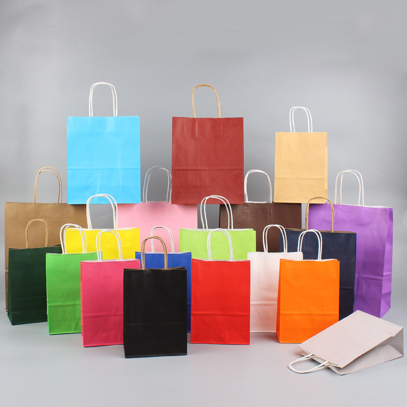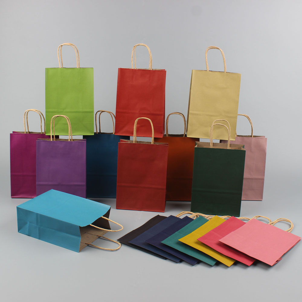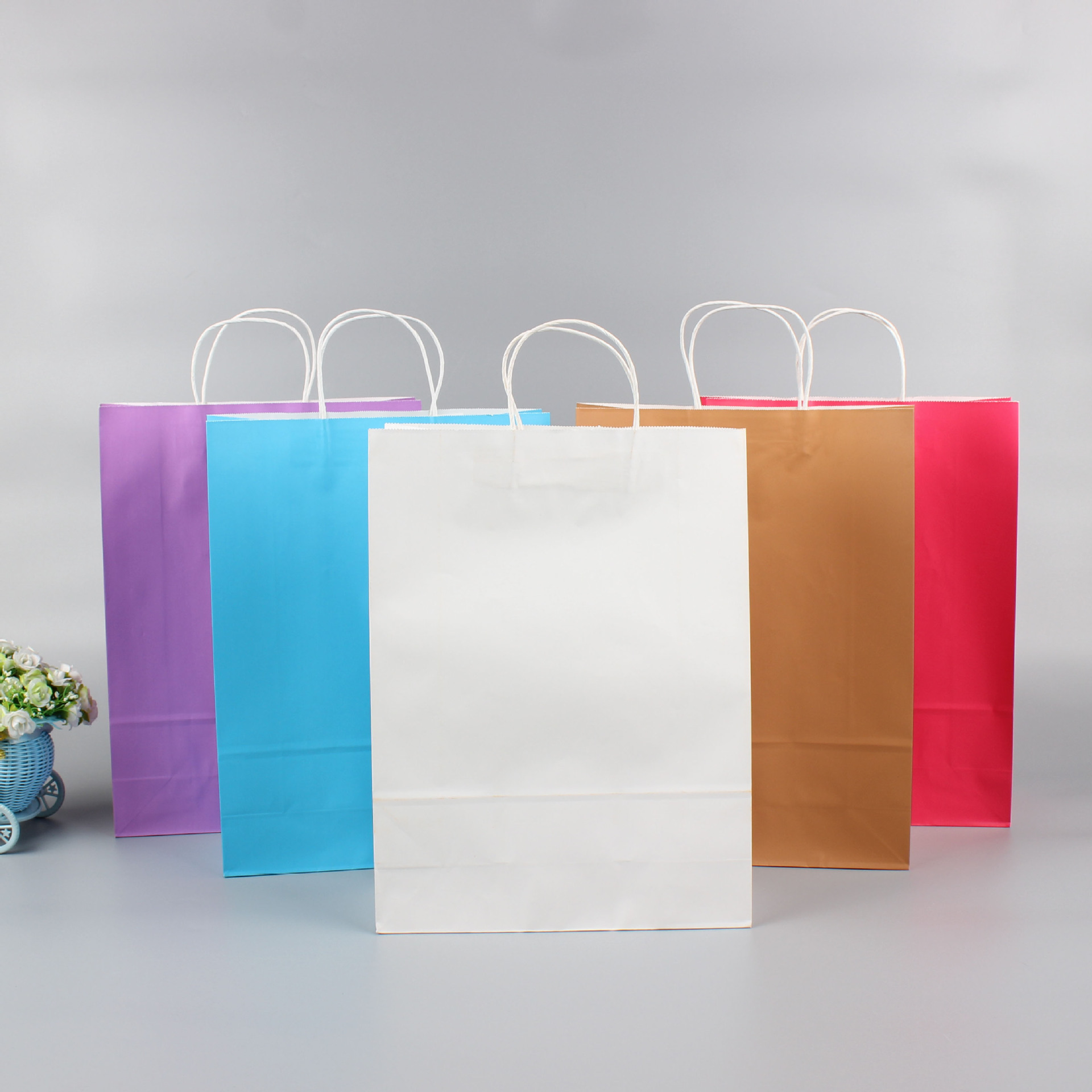 現物クラフト紙梱包袋カラー柄空白クラフト紙角底フラットペーパーギフトバッグ