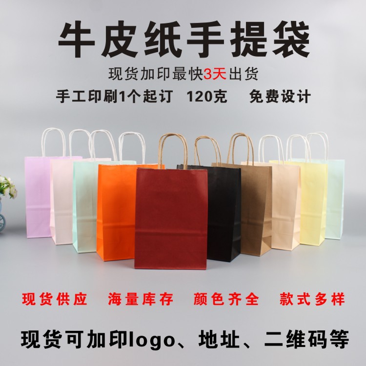 現物クラフト紙手提げ紙袋空白純色印刷可能ロゴ服装ケーキ包装プレゼントクリスマス