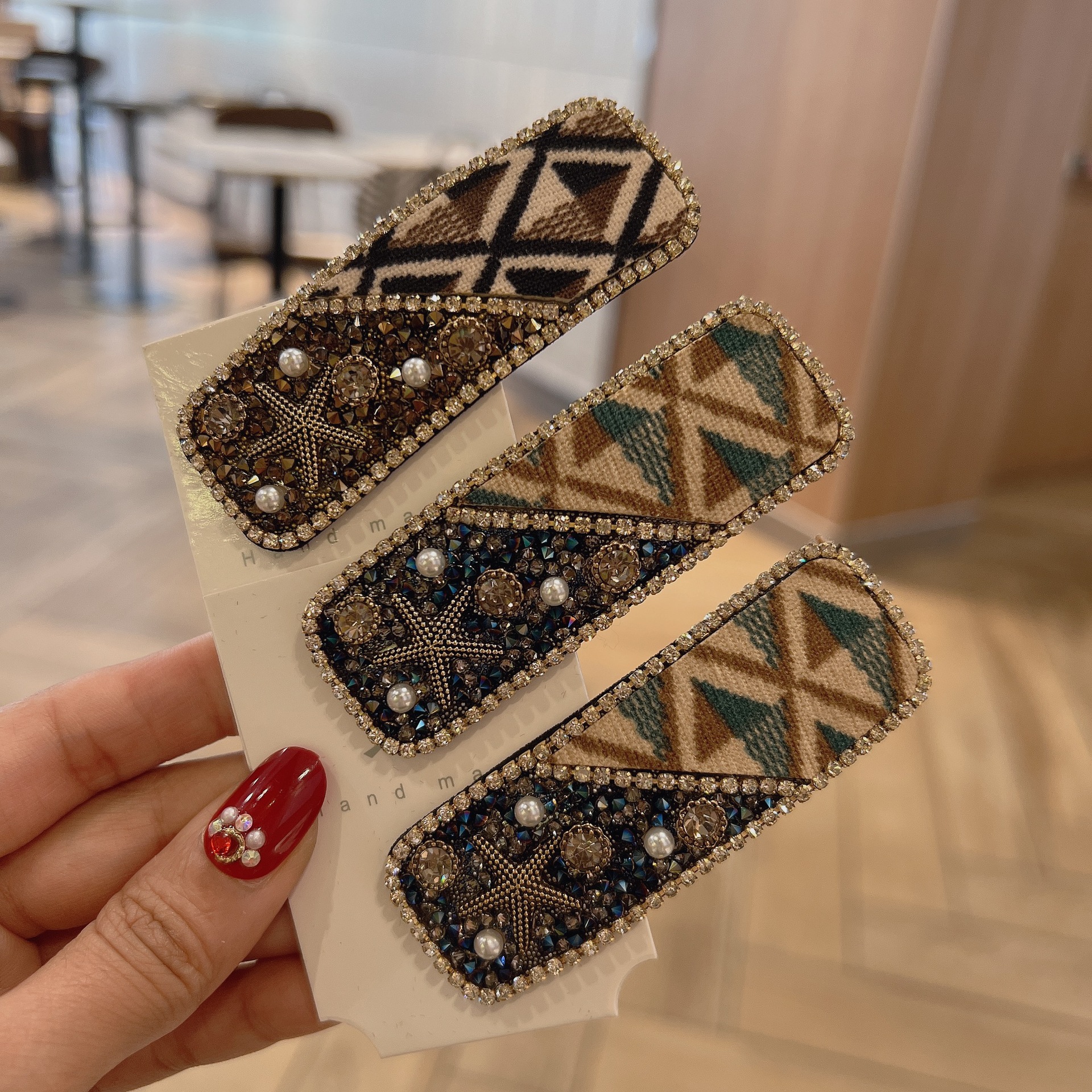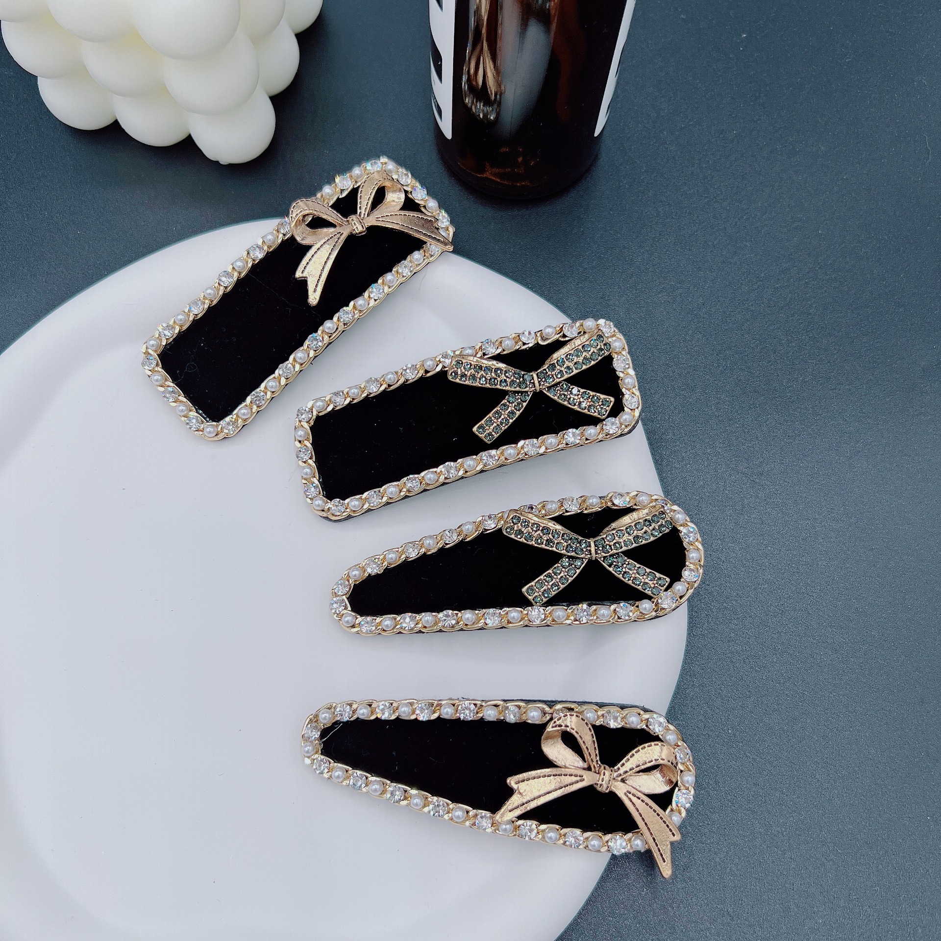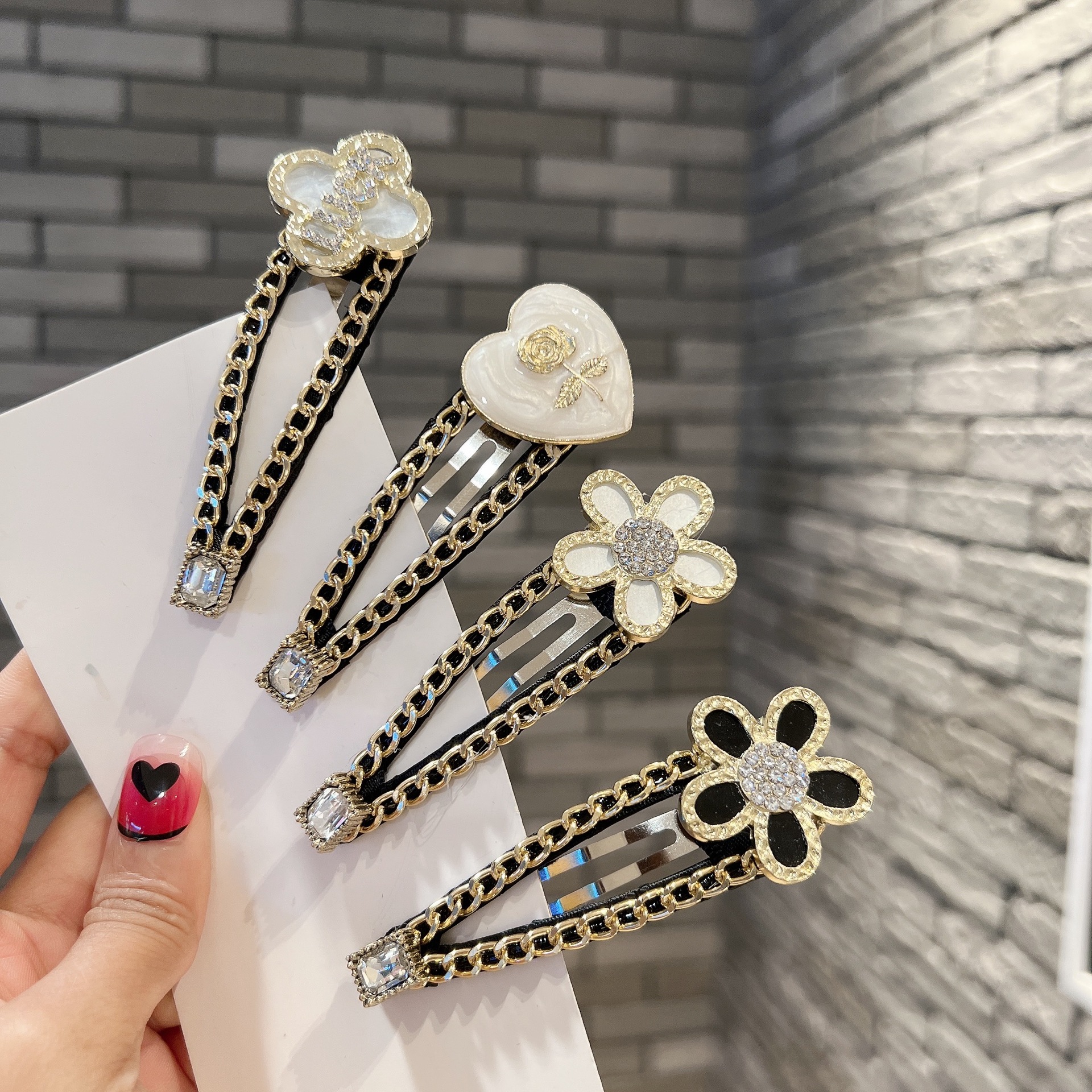 韓国版レトロベルベットbbクリップドリルエッジクリップ気質ファッショントップクリップ愛カード前髪クリップ女性
