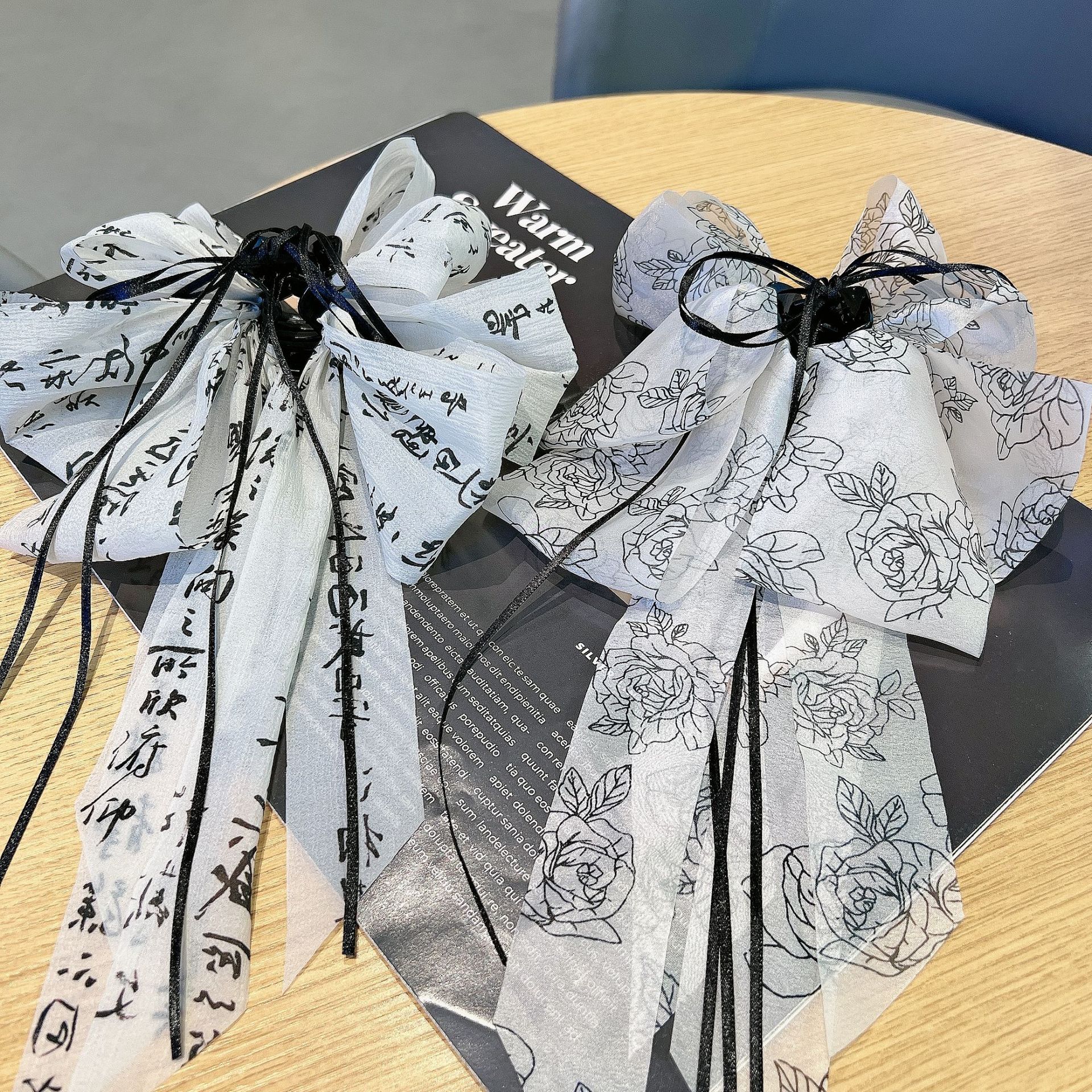 新中国風古風水墨蝶結びの長いリボンは、クリップの気質のヘアピンを持っています。