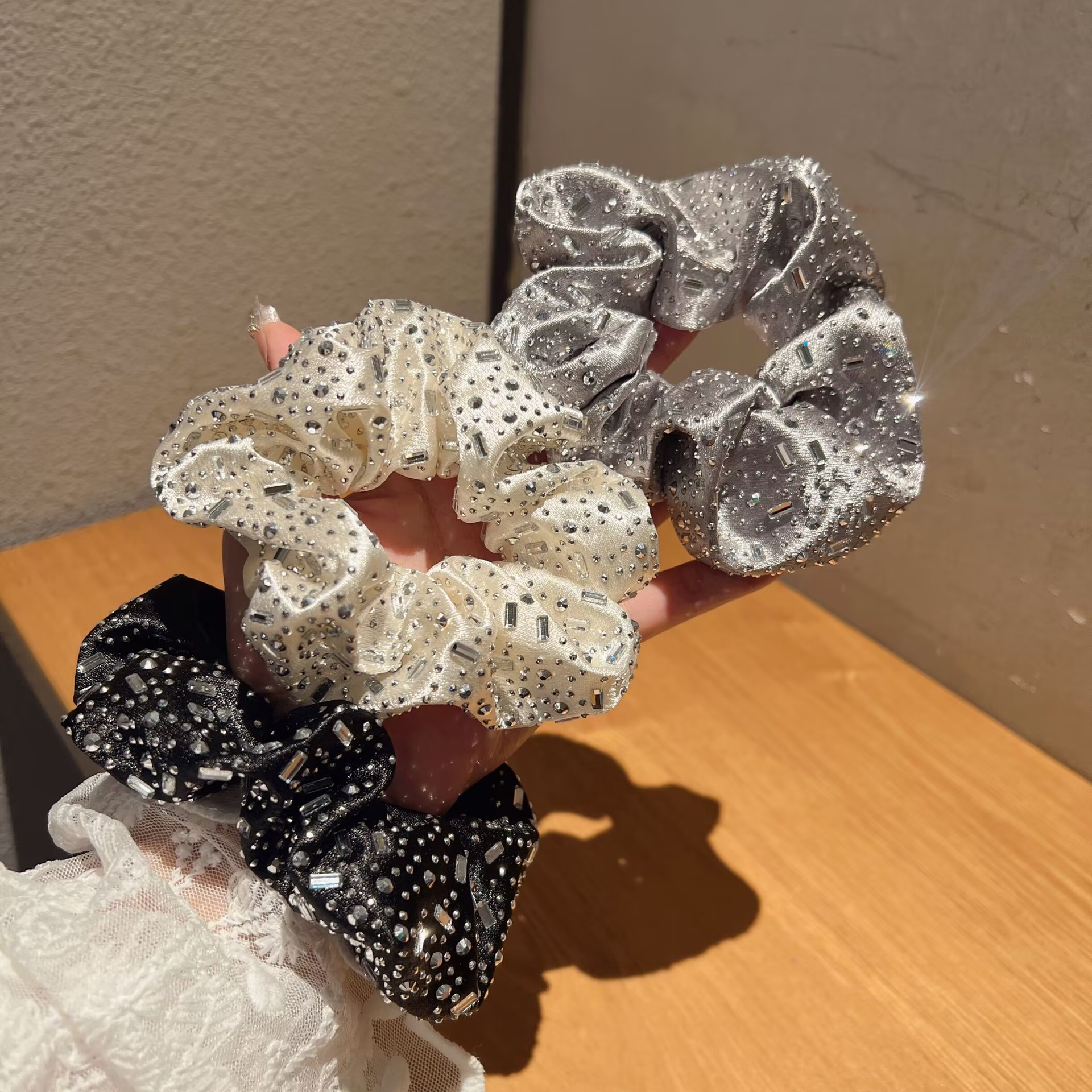 新しいスタイルのベビーブレスループラインストーン生地多用途ヘアゴムヘッドバンドボールヘアスタイル弾性ゴムバンド女性用