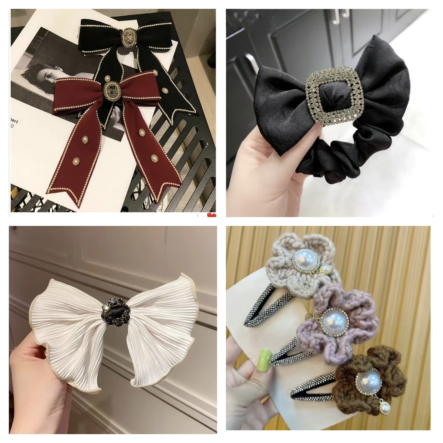韓国の大東門の蝶結びbbは真珠のドリルのヘアピンを挟みます。