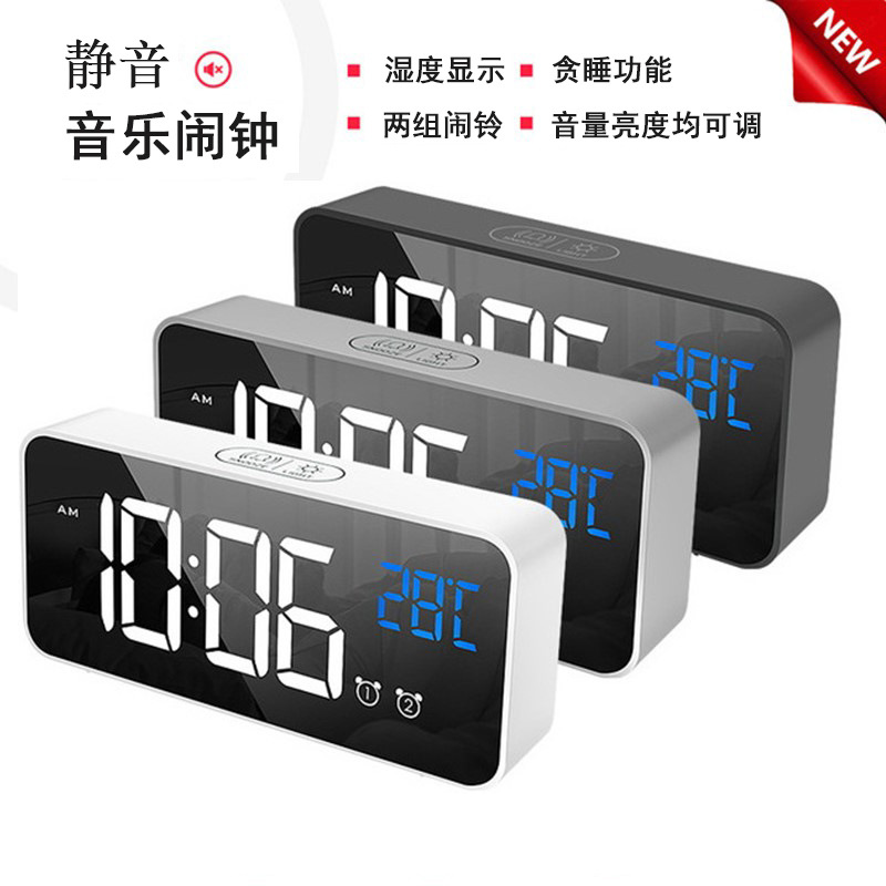 充電鏡面led音楽時計独立2組目覚まし時計スイッチ40曲付き音楽調整可能な音の大きさ