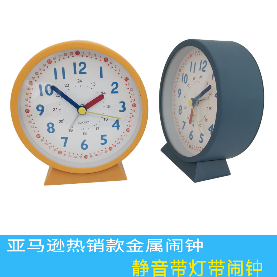 好ピン静音指針金属目覚まし時計早教時計面児童時計夜灯付きカラーデジタルベッド時計