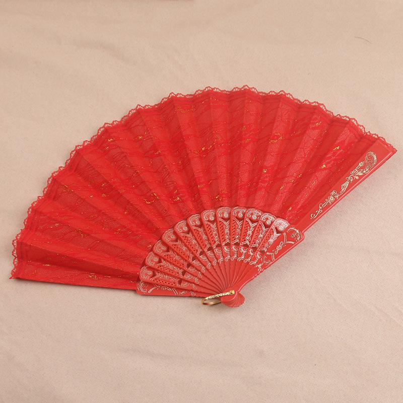 二重レース扇風機のプラスチック扇風機の赤い扇風機のダンス扇風機のメーカーの直接販売の金糸扇風機の復古風の扇風機の道具の扇風機